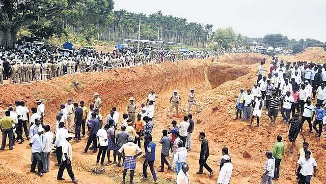 The project, estimated to cost around Rs 1,000 crore, was commissioned during the Congress-JDS government in 2018, and work started when the Congress came to power in 2023. The plan is to draw 0.75tmcft of water to Magadi for the Sriranga-Hemavathi lift irrigation project. Opposing the Express canal, the protesters symbolically threw a fistful of mud into the canal where work is in progress, and warned that the protest would intensify if the project was not stopped. Pro-Kannada activists also took part in the protest, which went off peacefully.