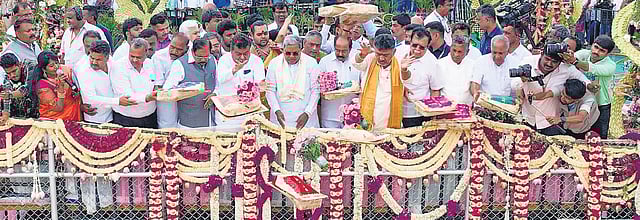 Siddaramaiah lauds his deputy Shivakumar for performing pooja and rituals in traditional attire during the inaugural of of the project