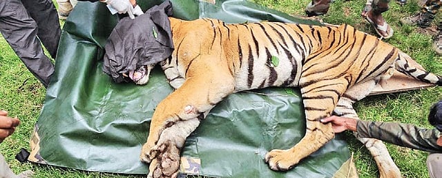 The big cat was captured after it was tranquillised by sharpshooter K P Ranjan. After medical treatment for the injuries by veterinarians Dr H Ramesh and Dr Waseem Mirza, the captured tiger was shifted to Bannerghatta Biological Park.