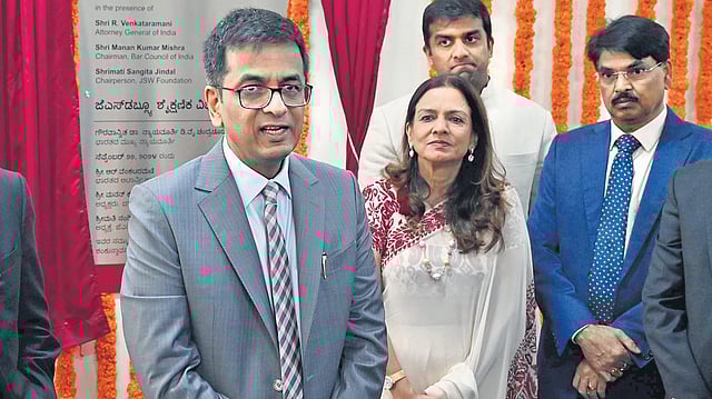 Bengaluru: The Chief Justice of India (CJI) DY Chandrachud laid the foundation stone for the JSW Academic Block at the National Law School of India University (NLSIU) on Sunday. Under the proposed plan, the existing building will be transformed into a multi-storey structure, providing state-of-the-art lecture theatres, seminar rooms, faculty offices, and collaborative research spaces.