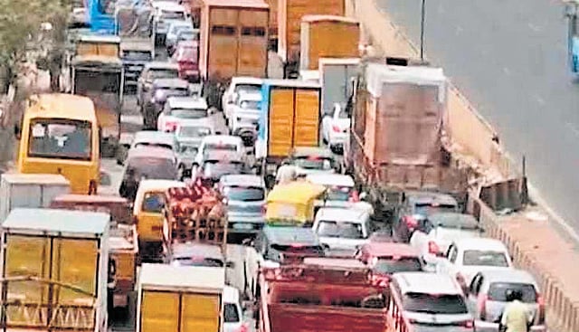 BENGALURU: A major traffic bottleneck occurs daily in front of the Bangalore International Exhibition Centre (BIEC), as trucks and other heavy vehicles entering the city clog the service lane. This creates a cascading effect, disrupting traffic flow on the entire stretch of road.