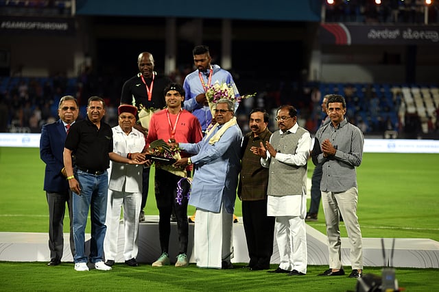 With CM Siddaramaiah and 1,000s of others in attendance, the event belatedly caught fire when the familiar frame of Chopra stood at the top of the runway for his third throw.