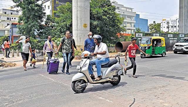 BENGALURU: Ongoing metro construction near the Babusapalya bus stop adjacent to the Outer Ring Road (ORR) has worsened traffic congestion and created daily hurdles for pedestrians. With the demolition of a key skywalk, crossing the high-speed, high-volume vehicles the road is becoming both difficult and dangerous for the public.
