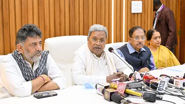 Karnataka CM Siddaramaiah addressing a press conference regarding the stampede incident at Chinnaswamy Stadium. (Photo | X)