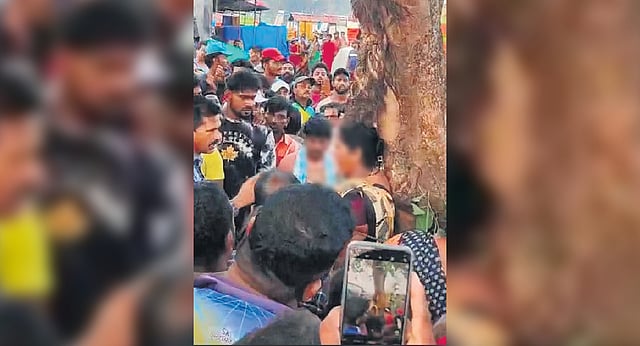 In the video, a woman is seen slapping the victim while a crowd stands by. Later, the victim is tied to a tree and slapped again. Despite this humiliation in public, no one intervened to stop the assault, said sources. A case has been registered under Sections 74, 115, 351, and 352 of the BNS and also under the provisions of the Prevention of Atrocities Act.
