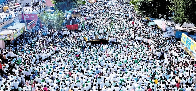 In Hukkeri, farmers’ associations enforced a total bandh demanding a revised minimum price for sugarcane. The town remained completely paralysed as protesters held a massive rally from Adavisiddeshwar Mutt to Court Circle, culminating in a highway blockade and an overnight sit-in protest. Police diverted vehicular movement through alternative routes as farmers erected barricades and parked earth-moving equipment across the roads to block traffic.