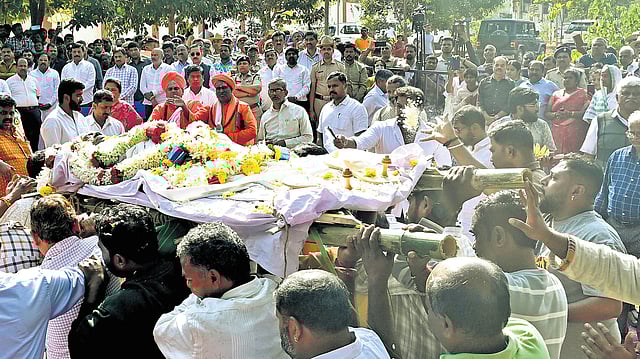 Her last rites were performed by her adopted son Umesh as per Lingayat tradition at Kalagrama, with full state honours that included a three-round gun salute. A musical tribute was also paid during her last rites.