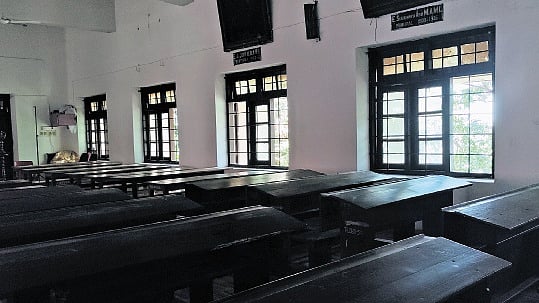 The 50-year-old school building houses Kannada, Urdu, and Marathi medium classes.