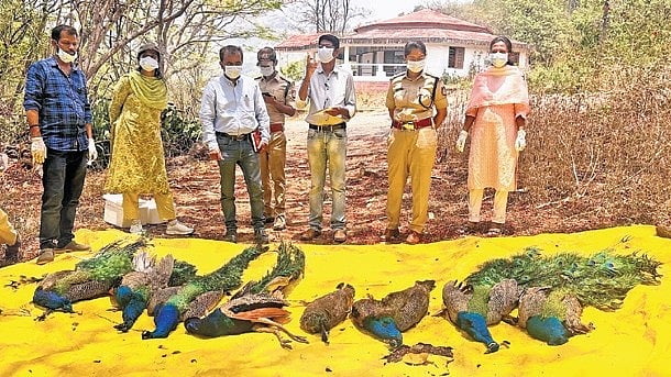 TUMAKURU: About 35 peacocks have died in a span of a week in rural parts of Tumakuru. A flock of 11 national birds were found dead at farms in Bommanahalli and Kolihalli villages in Urdigere hobli, Byrasandra and Hullenahalli villages of Gulur hobli.