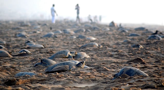 During night hours tourists are not allowed to the beach. The subsequent day, the beach is closed for tourists until all the eggs are collected and secured,” the official added. An official from Odisha said: “Two days of the year, these turtles come in lakhs, late in the night to lay eggs.