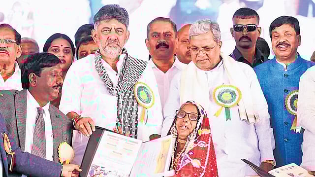 The CM and Deputy CM were addressing the ‘Bhoo Guarantee Samarpana Samavesha’ held in Haveri to distribute title deeds to over 1 lakh beneficiaries and celebrate the Congress government completing 1,000 days in office in the state.