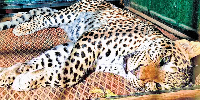 The leopard was trapped late on Thursday night in the slopes of the MM Hills Wildlife Sanctuary following a search operation led by the Karnataka Forest Department involving drone surveillance baited trap cages.