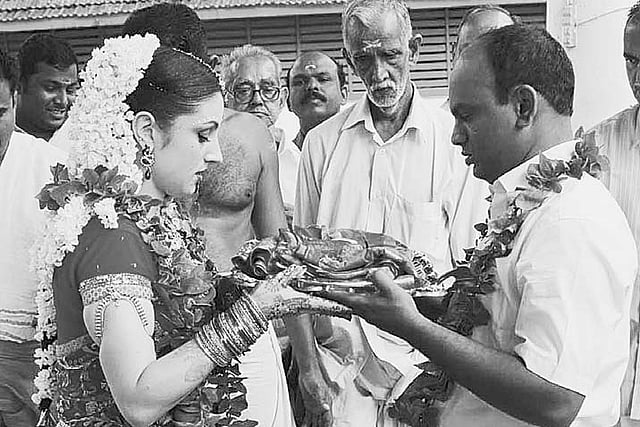 “We were waiting for her father Quinio Yves, mother Patricia and brother Narayanan to join us to conduct the wedding in a traditional way. Lakshmi had converted to Hinduism a year ago. We intend to stay at my house in Vaikom Thekkenada, near Ashram School. We are planning to start a Kathakali and Bharatanatyam training centre in Vaikom,” Sunil told Express on Friday.