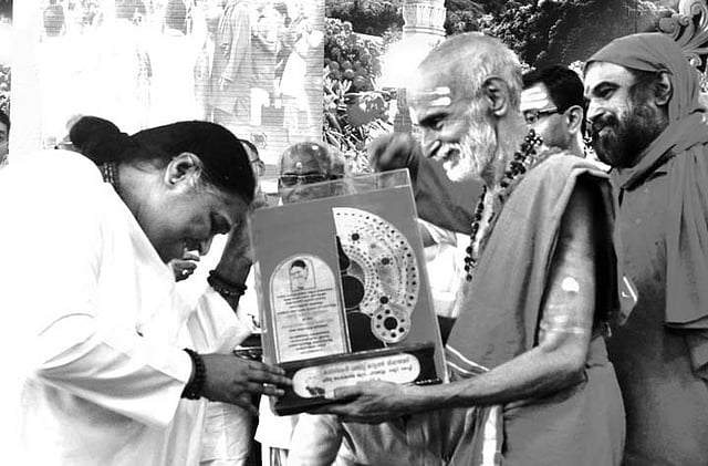 However, Amritanandamayi announced that she was giving the award money to the the ‘Shankara Bhagavatpaathar Vicharavedi’, a society chaired by Swamiyaar on the spot itself.