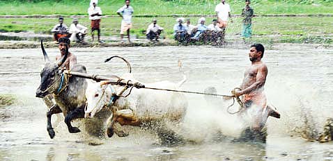 KOLLAM: The players entered the field at Mampuzha and inspected it to their satisfaction amidst the cheers of the crowd and the announcements about the weather. It was not a cricket match, but the long-lost tradition of bull racing competition which was held on the paddy field in the village, 10 kilometres away from the city. As part of its mission to revive agriculture, Kottankara Grama Panchayat decided to hold ‘maramadi’ or bull racing competition to draw people’s attention to agriculture-related festivals for which the place was known years ago. The panchayat did succeed in attracting crowds as people thronged three sides of the Mampuzha paddy field from morning.