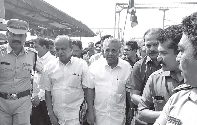 Pinarayi Vijayan arrived from Kerala to Mangaluru via Malabar Express train. He arrived amidst tight security, arranged after a protest call made by Hindu outfits against his visit to Mangaluru.