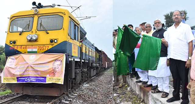 A train full of rice worth Rs 7.5 crore was flagged-off at Raipur by three state ministers on Sunday evening. The railways rake transporting the relief material is expected to reach Thiruvananthapuram by Wednesday, the officials said.