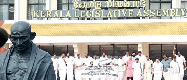 The Opposition resorted to shaming the Speaker, calling him a stooge, butcher, one who had thrown democratic norms and House precedents to the winds.Worse, they referred to him as an ordinary party local committee secretary who could stand with only shivering legs before the chief minister. Sreeramakrishnan was also reminded of his unsavoury act of damaging the Speaker’s chair, during the Opposition protests against the budget presentation by then Finance Minister K M Mani in 2015. The Speaker left in a huff, amid booing and heckling of the UDF young brigade.