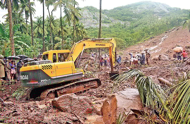 Kerala Revenue Minister E Chandrasekaran who visited the landslide hit areas at Kattipara and said the cabinet would decide the quantum of compensation for those who suffered heavy losses in landslides and floods He also warned of severe action against those indulged in unauthorised constructions in ecologically fragile zones.