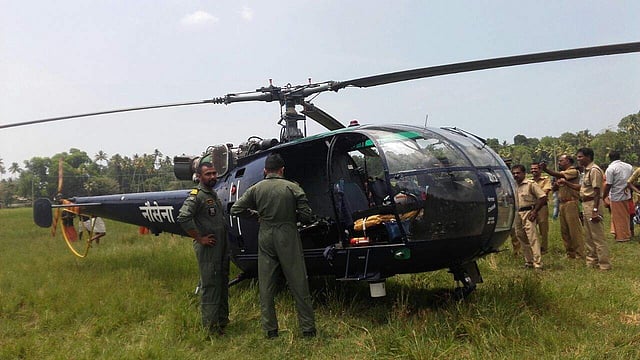The helicopter took off from here at around 9.30 AM and after about 1 hour 15 minutes, the pilots observed an engine warning light, indicating low pressure, a defence spokesman said.