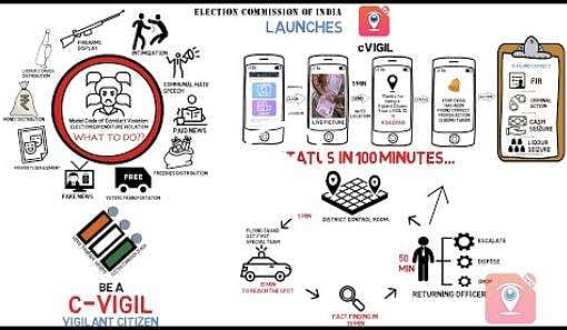 “The complaints people register through cVIGIL app fall under 16 categories. The respective District Contact Centre upon the receipt of the complaint cross-checks its authenticity and initiates further action,” said an officer with the Chief Electoral Office.