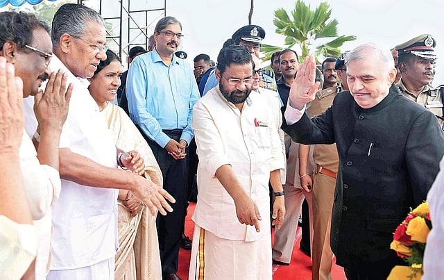 THIRUVANANTHAPURAM: Chief Minister Pinarayi Vijayan and his cabinet colleagues accorded a send off to outgoing Governor P Sathasivam at the Trivandrum airport on Wednesday. Pinarayi and ministers Kadakampally Surendran, A K Balan, K Krishnankutty and KT Jaleel received Sathasivam at the technical area of the airport.