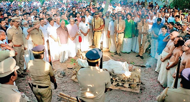 BJP leaders, including Union Minister V Muraleedharan, K Surendran, PK Krishnadas, M T Ramesh, Shobha Surendran, S Sethumadhavan, P E B Menon and other political leaders paid homage. A police team gave guard of honour before the lighting of the pyre.