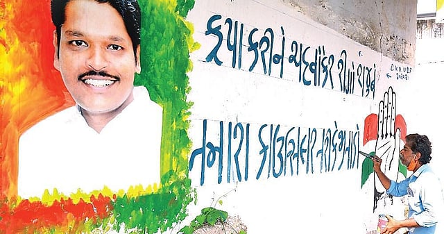 Poll graffiti in Gujarati have come up on a wall on Gujarati Street here. Reego Raju, the UDF candidate contesting from the ward, launched his campaign in the language. Now, LDF and NDA candidates also plan to follow suit.Dhruvkumar Pandya, a lawyer of the Kerala High Court who is a Gujarati, said the community is playing a role in the election to the ward.