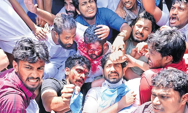 THIRUVANANTHAPURAM: After a brief lull, the busy MG Road in front of the Secretariat resembled a bloody war zone following clashes between Kerala Students Union (KSU) members and the police on Thursday. Sixteen KSU workers and five policemen were injured in the pitched battle as the cops blocked a march led by union president K M Abhijith in solidarity with the protesting PSC job aspirants. The PSC job aspirants’ protests had not seen violence till now.