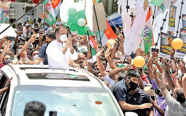 KOTTAYAM: In a major boost to the UDF’s election campaign for the coming assembly polls, Congress leader and Wayanad MP Rahul Gandhi on Tuesday spoke at various reception meetings in Kottayam, Puthuppally, Kanjirappally, Pala and Kaduthuruthy assembly constituencies, where thousands of people had gathered despite the scorching sun.