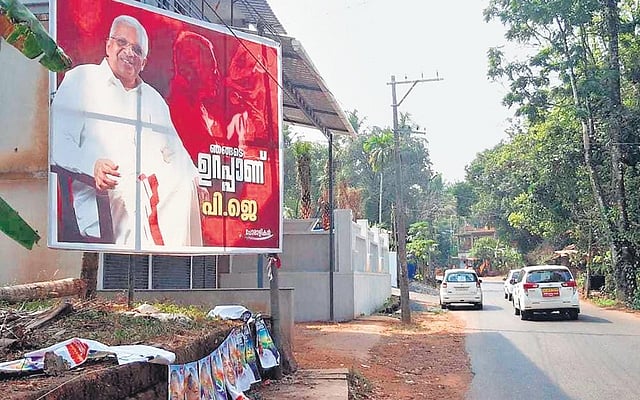 Put up at RV Metta, a CPM bastion near Chakkarakkallu, by a group calling themselves ‘Poralikal’, the board read ‘Njangalude Urappanu PJ’ (PJ is our assurance) below his photograph.
