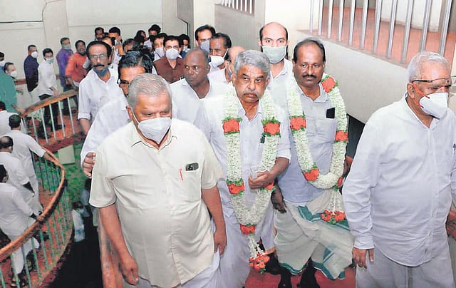 KANNUR: After eight years, Karayi duo Rajan and Chandrasekharan, senior leaders of CPM in the district, returned to their native place of Thalassery on Friday to a rousing welcome from supporters.