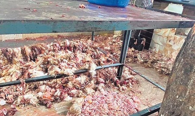Chicken waste strewn on the floor at a stall at Pannyannur in Kannur