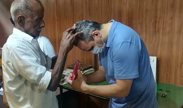 "Arjun Das is saying that he is thankful to god for keeping you intact during the Covid times and for having another rendezvous with you," Dr C P Asghar, of the Greens Ayurveda Hospital, told Vaidyar in Malayalam, translating what Santos said in English. Karunan Vaidyar nodded happily.