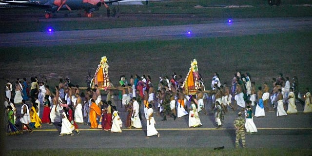 "There is an Aaratu mandapam near the runway where the temple idols are being kept for some time as part of the ritual during the procession. We are keeping it with all sanctity. We are facilitating the passage of the traditional procession. The flight companies are also extending all cooperation to retain the legacy," the source told PTI.