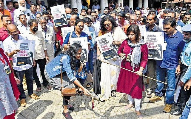 KOZHIKODE: The members of Yuktivadi Sangham from different parts of the state burnt a hijab on Sunday in solidarity with the anti-hijab movement in Iran. The incident took place during a seminar, ‘Fanos-Science and Free Thinking,’ organised by the Yuktivadi Sangham in Kozhikode. Another seminar will be held in Malappuram next month.
