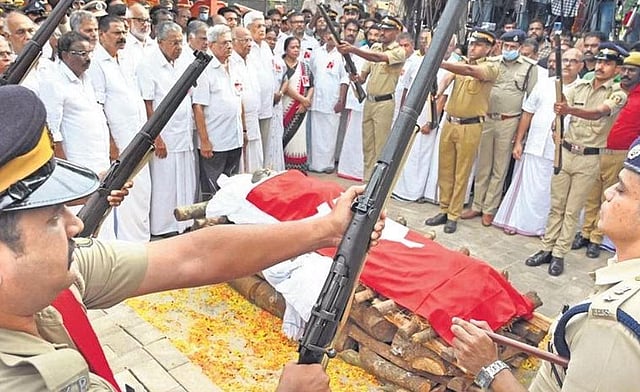 Governor Arif Mohammed Khan, Speaker A N Shamseer, writer T Padmanabhan, CPM general secretary Sitaram Yechury, politburo members Prakash Karat, G Ramakrishnan, M A Baby, A Vijayaraghavan, party state secretary M V Govindan, senior leaders, ministers and a host of other dignitaries paid their final respects to the leader at CPM district office Azheekodan Mandiram.
