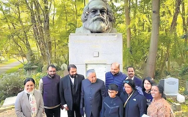 Chief Minister Pinarayi Vijayan with his family members and ministers at the Karl Marx Tomb in London