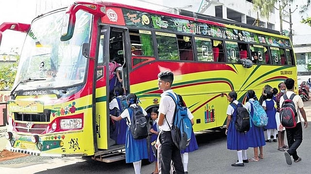 Students board a tourist bus in Kozhikode on Friday | E Gokul