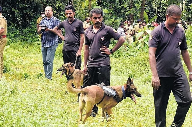 PATHANAMTHITTA: Most people have seen such scenes only in movies. “Scenes like police dogs going after a crime suspect’s trail and scent evidence create fear. Now, we are seeing it in front of us in our village. Definitely, it is a new experience for us,” said Joji, a villager of Elanthoor. The arrival of cadaver dogs Maya and Murphy created curiosity and anxiety among local villagers and people who had come from various parts of Pathanamthitta and neighbouring districts.