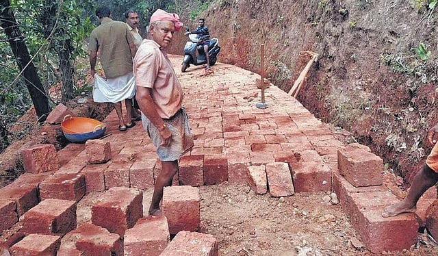 A road at Paivalike grama panchayat in Kasaragod being paved with laterite stone