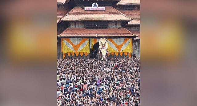 “With the gopuram decked up in flowers, the elephant carrying the idol coming out through the door is a beautiful view,” said Pradeep, a festival fan who had travelled from Kozhikode.