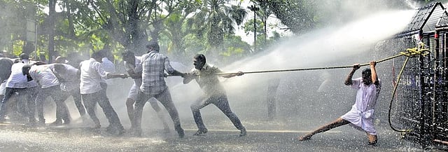 After senior leaders were done with their speeches, the police tried to disperse the protestors. As the activists did not pay heed to their demand, the police used water cannons on them. Meanwhile, some protestors, including women, tried to trespass into the secretariat compound. The scenario turned worse when the police began arresting the protestors. Irate YC workers tried to block police vehicles in which detainees were being taken away. They damaged the glasses of a police bus and vandalised a few police shields. The cops resorted to lathicharge, in which several YC leaders, including state president Rahul Mamkootathil, were injured.