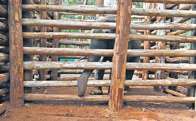 With the help of the kumki elephants, PT 7 was caged inside the kraal made using logs of eucalyptus trees around 1pm. An anti-tranquilliser dose was administered to help the elephant return to its senses. The operation was a success.