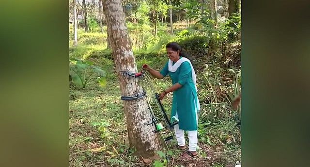 That’s where Shyamala P M comes in. Over the past decade, the 48-year-old native of Balussery has trained over 5,000 women in Kozhikode and other districts in the use of the coconut climbing machine.