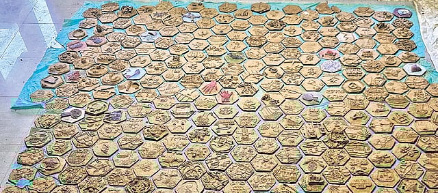 KASARGOD: In a collaborative effort, Adoor Government Higher Secondary School (GHSS), in Delampady panchayat, Kasaragod, and the artist collective, Trespassers, will host a camp at the school, on Thursday, where hexagonal clay tiles crafted by students will undergo the firing process in a kiln to achieve their final, hardened form.