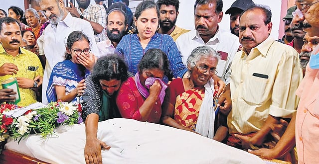 THIRUVANANTHAPURAM : “He told me he would come back home by 4pm. See how he returned.” Melhi’s words pierced through the air at her home at Marayamuttom in Neyyattinkara on Monday. The hundreds of people who had gathered at the house to bid farewell to her son, sanitation worker N Joy, could do nothing to console her.