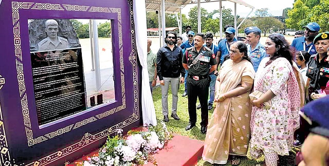 Principal Dhirendra Kumar inaugurated the newly constructed Harshan Gate, named in memory of the late Captain Harshan, while Brigadier Salil M P, Pangode Station Commander, inaugurated the NJ Nair Gate. “The arrival of the helicopter drew a crowd of curious students eager to explore its features up close. Witnessing it firsthand will surely inspire generations of students,” said Dhirendra.