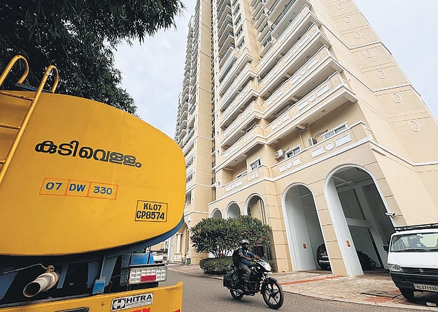 According to Madhusoodanan Nair, president of the residents’ association, water for all the 1,258 apartments is supplied from a single tank.