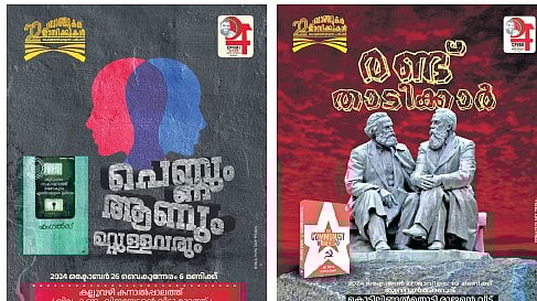 There are no microphones or loudspeakers; neither are there any tables nor chairs. No banner to introduce the speakers. Just a poster sporting two bearded men — Karl Marx and Friedrich Engels — looking at each other, with a caption Randu Thaadikkar.